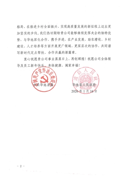“貴公司的幫扶不僅為廣大群眾拓寬了增收致富的渠道,更點燃了鄉親們創造美好生活的內生動力,讓老區人民真切感受到了來自中央企業的溫暖與擔當。”近日,公司收到了一封來自甘肅華池縣委、縣政府的感謝信,字里行間滿是對公司定點幫扶工作的高度贊許。