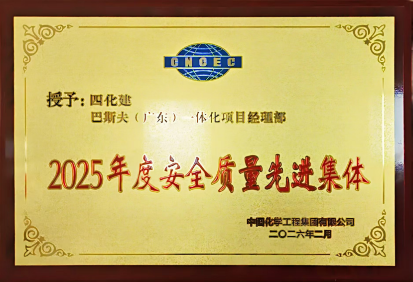 近日,中國化學(xué)工程在京召開2026年生產(chǎn)運(yùn)營安全質(zhì)量環(huán)保工作會(huì)議。中國化學(xué)工程第四建設(shè)有限公司巴斯夫(廣東)一體化項(xiàng)目經(jīng)理部榮獲“安全質(zhì)量先進(jìn)集體”稱號(hào),徐翠文獲評(píng)“質(zhì)量管理先進(jìn)個(gè)人”,陳德貴榮獲“生態(tài)環(huán)保先進(jìn)個(gè)人”。