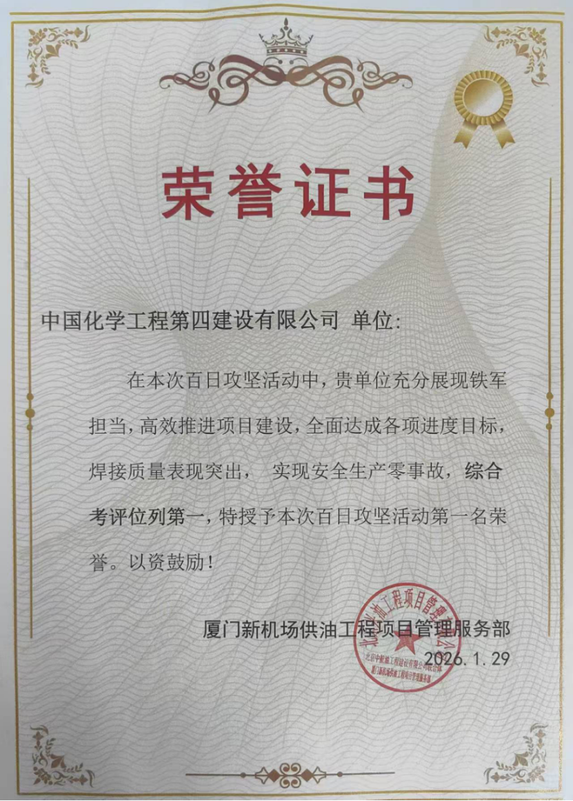 近日,在廈門(mén)新機(jī)場(chǎng)供油工程項(xiàng)目“百日攻堅(jiān)”活動(dòng)總結(jié)表彰會(huì)上,公司憑借高效的工程推進(jìn)、完美的焊接質(zhì)量與“零事故”的安全業(yè)績(jī),在綜合考評(píng)中榮獲第一名。
